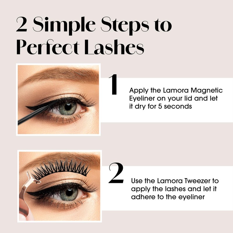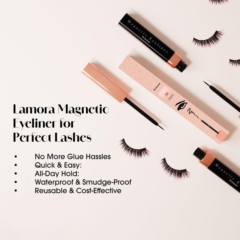 - STRONG MAGNETIC HOLD: Lamora´s magnetic eyeliner keeps lashes securely in place all day, offering confidence and durability even during activities or in challenging weather.