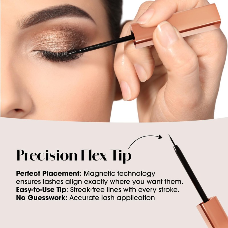 2) Apply the Magnetic Eyeliner: Shake the eyeliner tube well. Using the applicator, draw a thin to medium line along your lash line, similar to how you’d apply regular eyeliner. Make sure the line is even and matches the placement of your magnetic lash strip.