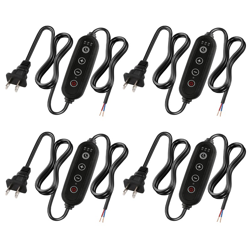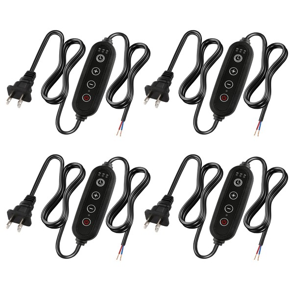 Lamp Dimmer Switch with Cord, Plug-in Dimmer 110-120V Indoor Timer Power Cable with Four Button, Set 2H/4H/8H Automatic Light Switch Timer, 4 Pack