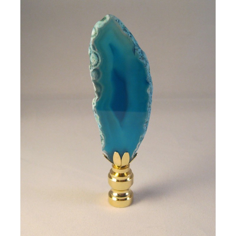 Lamp Finial-Natural BLUE/AQUA AGATE-Brass Base