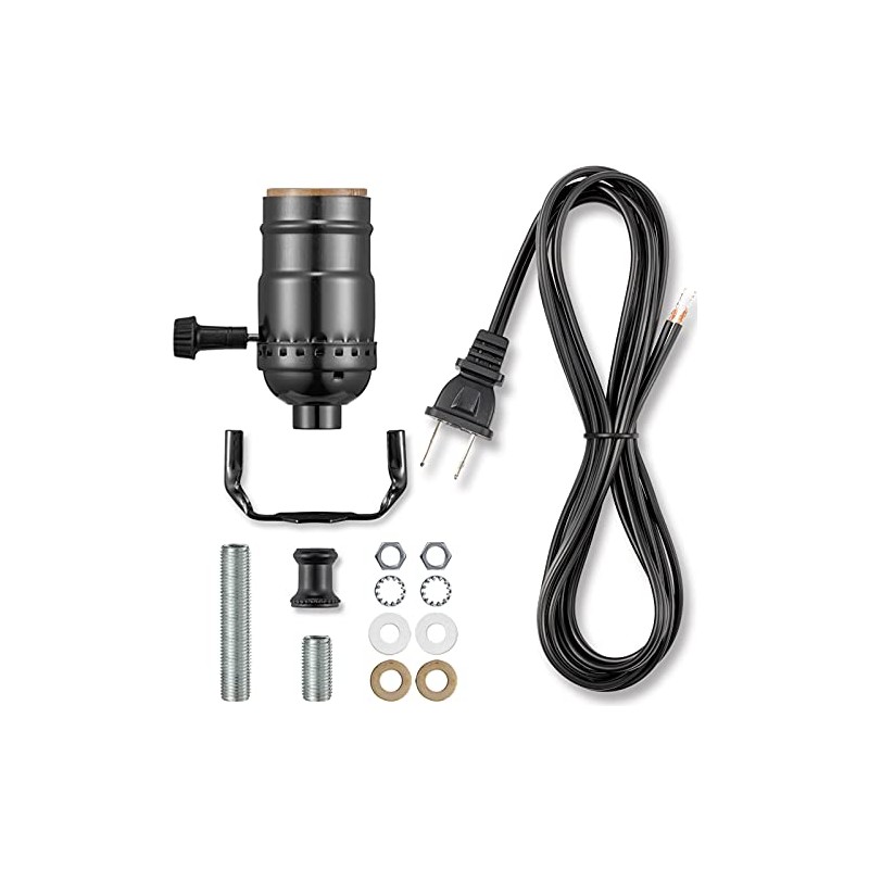 Lamp Rewire Kit, 12 Foot Matching Cord, 3 Way Socket and Essential Hardware, Table and Floor Lamps Socket Replacement, Rewire and Repair, DIY Light Making Kit (Black)