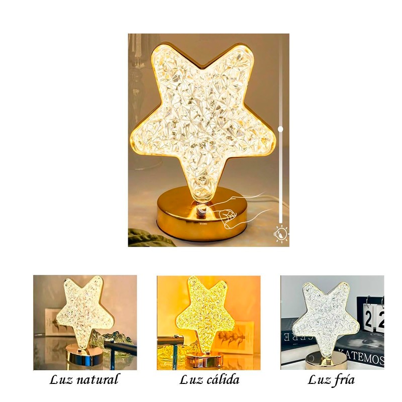 Lámpara de Cristal Led Elegante Estrella para Escritorio Mesa Buró de Noche