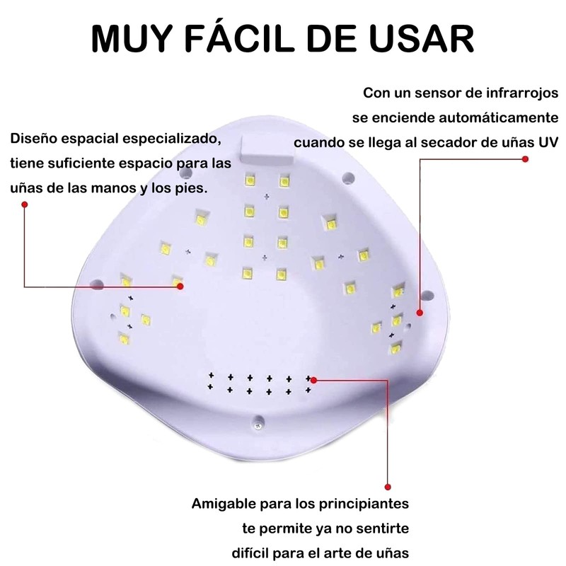 - 🌺【NO MANOS NEGRAS】Los días de la lámpara de uñas de luz UV simple nos han dicho adiós. Lampara de unas uv profesional luz suave no dañará su piel, no dañará sus uñas, no hay necesidad de preocuparse por las manos negras y no dañará sus ojos. Ahora puedes cambiar el estilo de tus uñas cuando quieras sin preocuparte por los efectos secundarios, incluso una vez cada dos o tres días.
