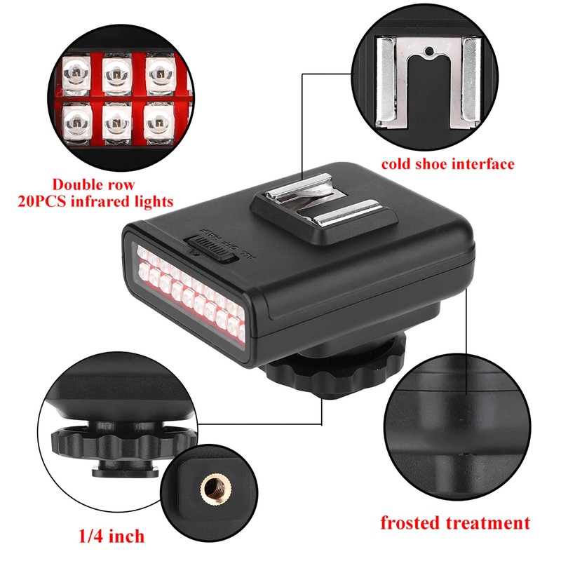 • Las luces infrarrojas de doble hilera de 20 piezas, pueden establecer un chip de luz de 10 piezas brillante, también pueden ser completamente brillantes, de acuerdo con la distancia que desea disparar, elija la cantidad adecuada de chips de luz.