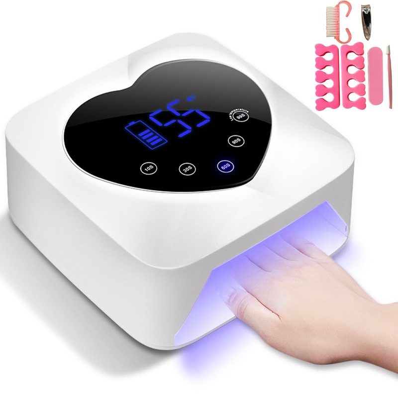 Lámparas de curado de esmalte de uñas LED UV recargables, inalámbricas, 72 W, para gel de uñas con base desmontable, 5 temporizadores, lámpara de uñas de gel con 30 abalorio LED, herramientas de arte de uñas