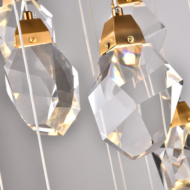 - 【Easy to Install】The modern chandelier contains all accessories and installation instruction. The installation of this crystal chandelier is very simple. After you receive the goods, you only need to screw the crystal into the metal lamp body according to the installation instruction, and then install the chandelier on the ceiling.