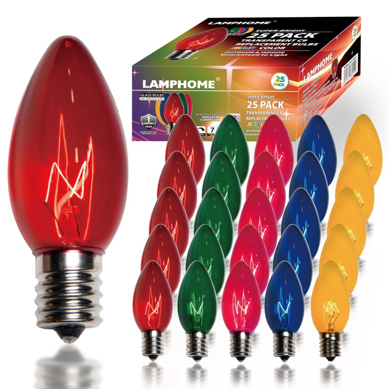 - 25Pack C9 Light Bulbs: C9 clear replacement bulbs, 25 pieces