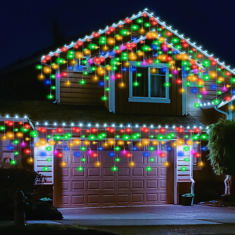• 【IP44 Waterproof & UL588 Listed】Waterproof Christmas lights for house can effectively block rainwater from entering. 29V safety low voltage certified by UL is more safety and less power consumption. Icicle fairy lights will satisfy your outdoor use even on rainy, snowy, or storm days.UL Listed Plug and Low-temp LED bulbs ensures safe to touch even after long time use. Allows you to save time and effort. Safer to use!