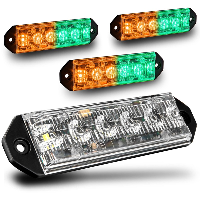 LAMPHUS 4pc PlanarFlash 6W Amber Green LED Surface Mount Police Grill Strobe Warning Lights [SAE Class 1] 12V Ultra Slim Flat Grille Flashing Emergency Fire Lights for Firefighter Vehicle Trucks