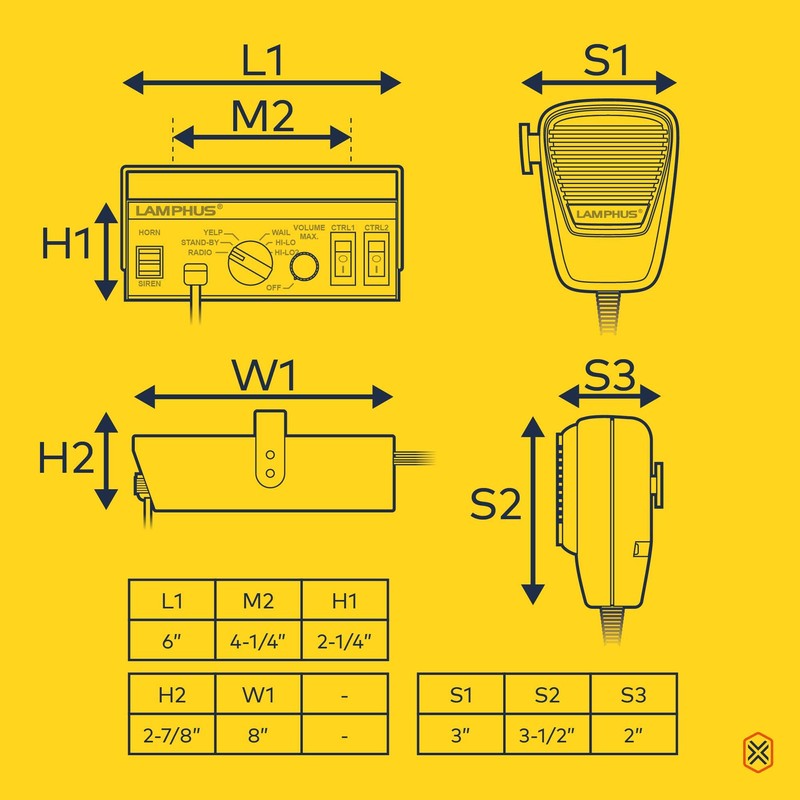 - Function includes: Radio/Standby, Wail, Yelp, Hi-Lo, Horn, and Manual Siren.