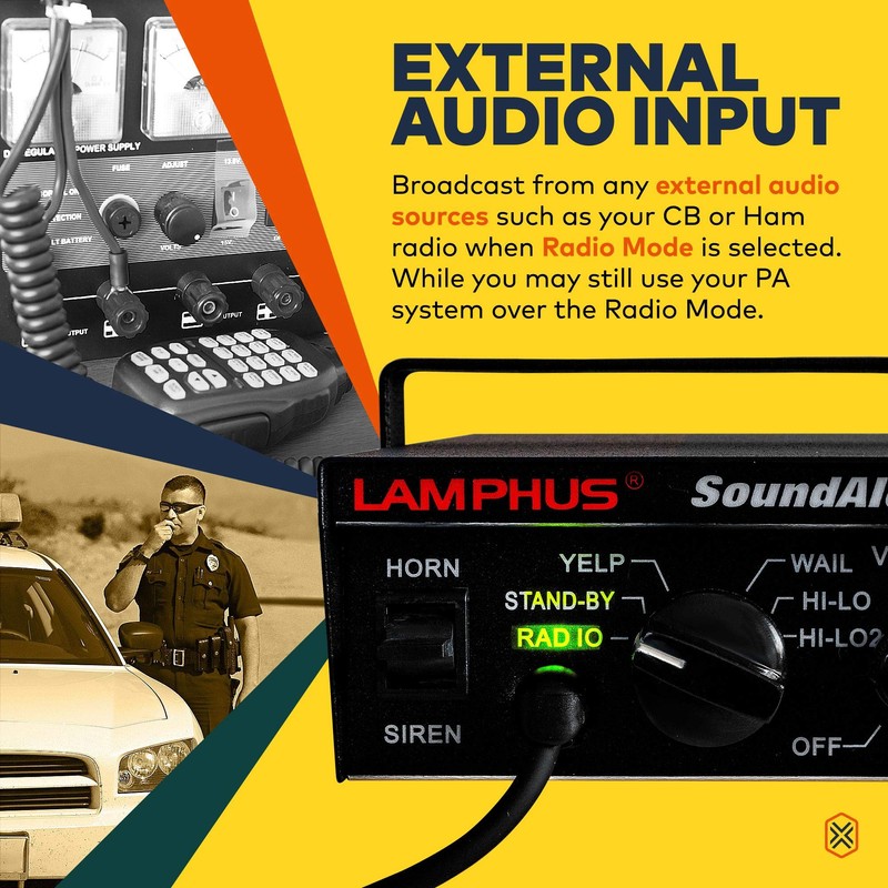 LAMPHUS SoundAlert 12V 100W Police Siren PA System Amplifier Controller [Handheld Microphone] [Hands-Free] [2 x 20A Switches] Warning Emergency Siren for Vehicles Truck UTV ATV Car POV