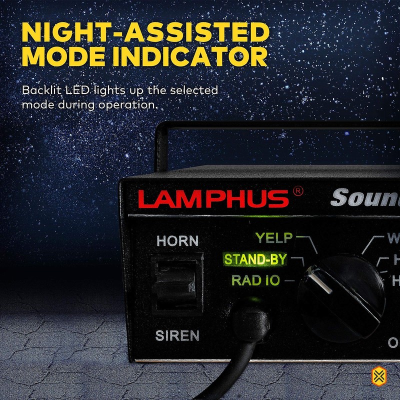 LAMPHUS SoundAlert 12V 100W Police Siren PA System Amplifier Controller [Handheld Microphone] [Hands-Free] [2 x 20A Switches] Warning Emergency Siren for Vehicles Truck UTV ATV Car POV by LAMPHUS Store