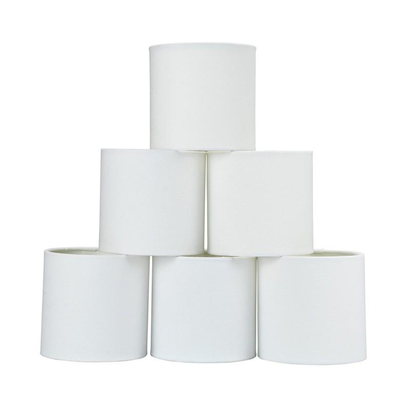 LAMPWELL MEMO Clip-on Chandelier Fabric Lamp Shades,Set of 6,Small Drum,5.2"×5.2"×H5.2",Linen, Handmade,Modern Trendy Decorative,White