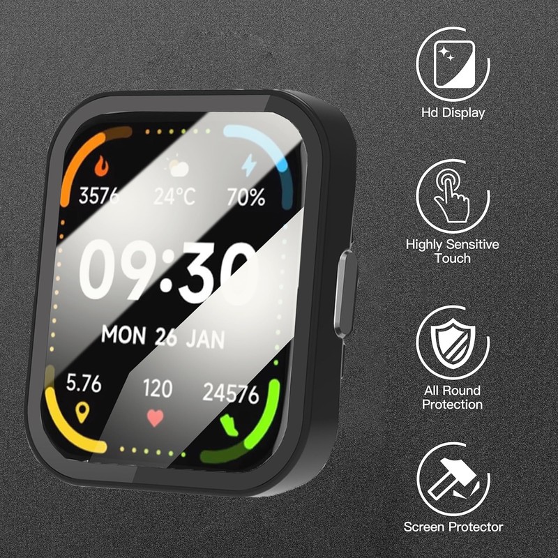 • Scratch Resistant - The tempered glass screen protector and bumper case 2 in 1 design overall protect for Compatible with IDW26 Smart Watch face and edges corners of against scratches, drops and bumps.