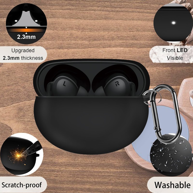 Lamshaw Soft Silicone Protective Case with Keychain, Compatible with OnePlus Nord Buds 3 Pro, Shockproof, Dust Resistant, 360 All Round Protection, Black, Case for OnePlus Nord Buds 3 Pro