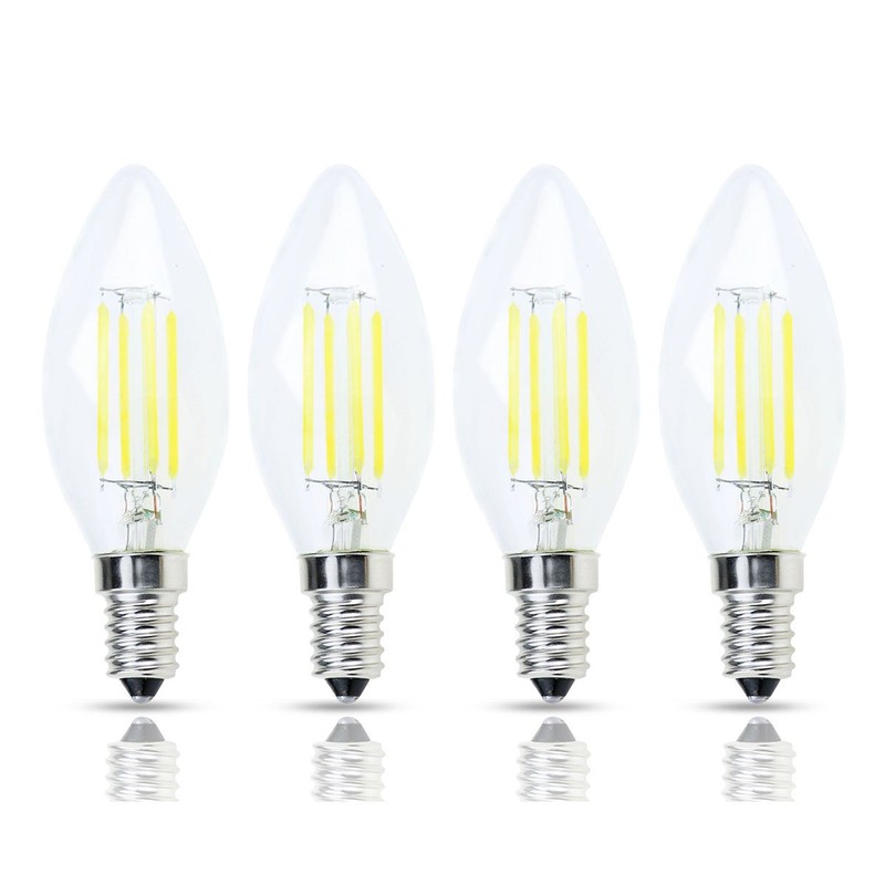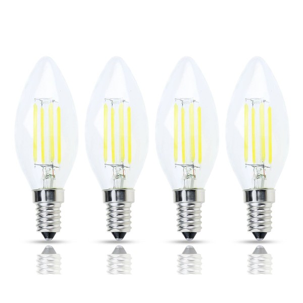 Lamsky E14 European Base LED Filament C35 Bullet Top Vintage Edison Bulb,4W Daylight 6000K, No-Dimmable,4-Pack