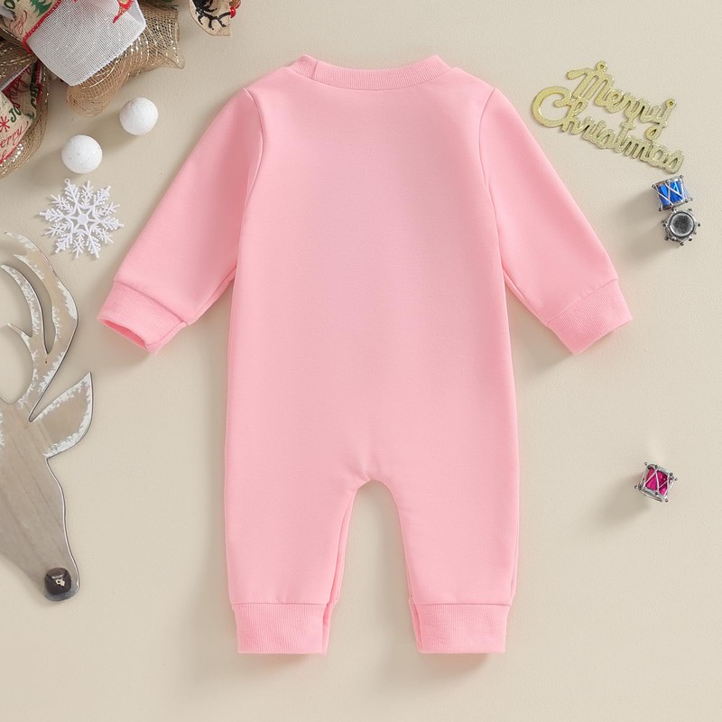 Lamuusaa Newborn Baby Girl Boy Christmas Outfit Santa Baby/Merry Mini Embroidery Romper One Piece Jumpsuit Fall Clothes (Pink, 6-12 Months)