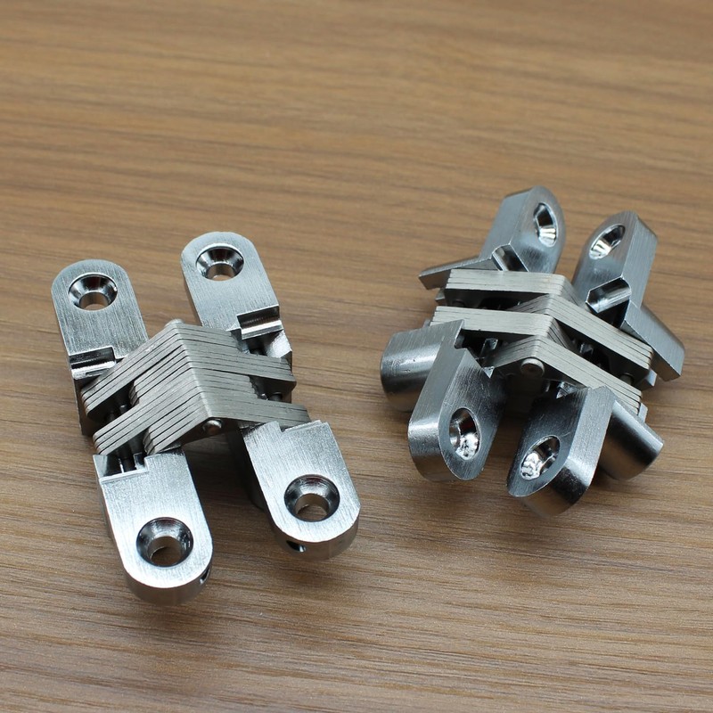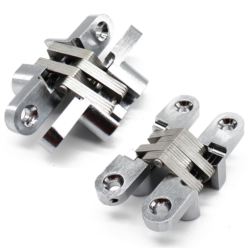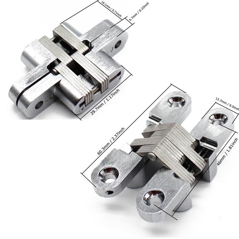 Lamvbls 2 Pcs 2.3 inch Hidden Hinge Stainless Steel 180 Degree Invisible Cross Hinges for Doors and Cabinets