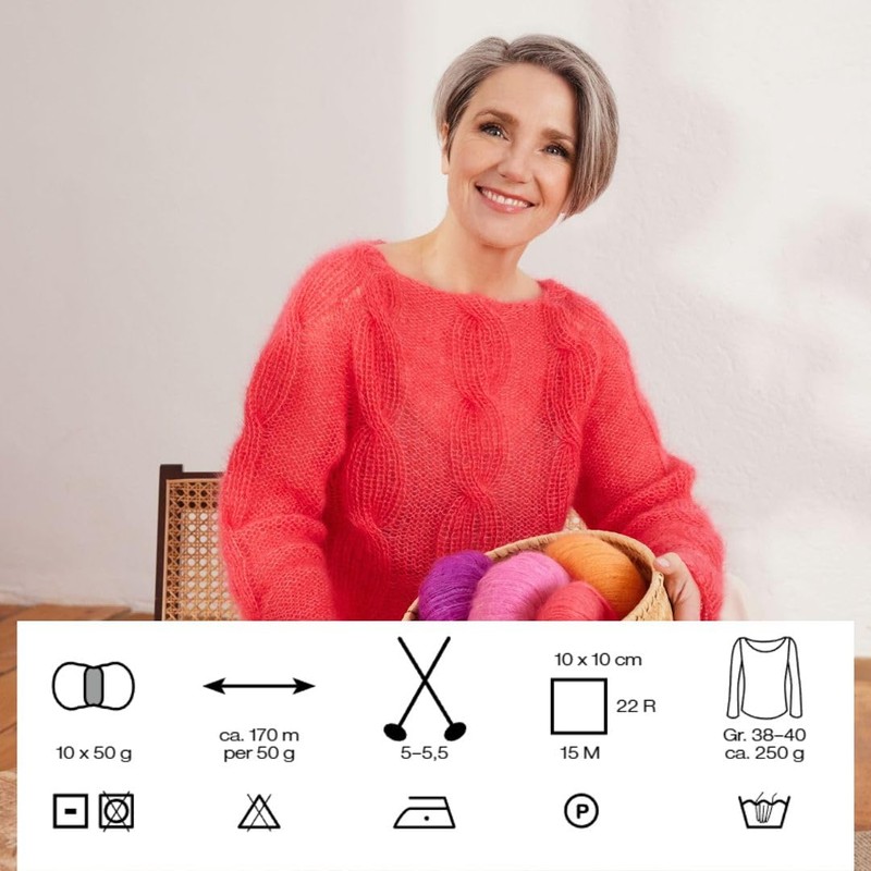 - Unique yarn structure for special projects: Airy from Lana Grossa is characterised by its innovative mesh yarn structure, which is filled with a blend of soft baby alpaca and fine merino fibres. This unique combination gives the yarn a fluffy texture that is ideal for light, airy yet warming knitting and crochet projects.
