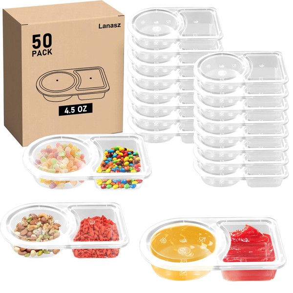 Lanasz 50 Pcs Condiment Container with Lid, Disposable Double Compartment Pla...