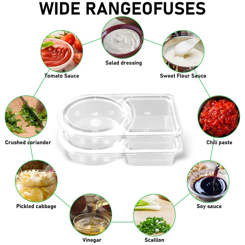 • Great Value Pack-Package includes 50 Double Compartment Condiment Containers,50 plastic lids ,with a capacity of 4.5 oz,enough for daily life use.