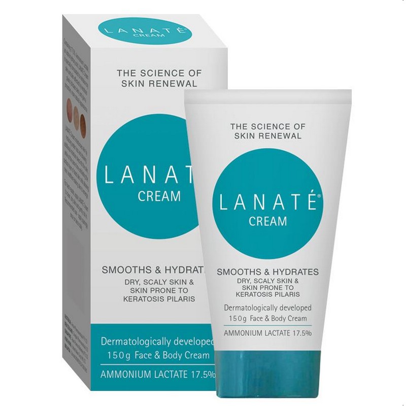 stimulating dermal renewal, and moisturises dry skin. Containing high strength Ammonium Lactate, a naturally occurring Alpha Hydroxy Acid, LANATÉ has been widely used by people suffering from the very common skin condition, Keratosis Pilaris (chicken skin).