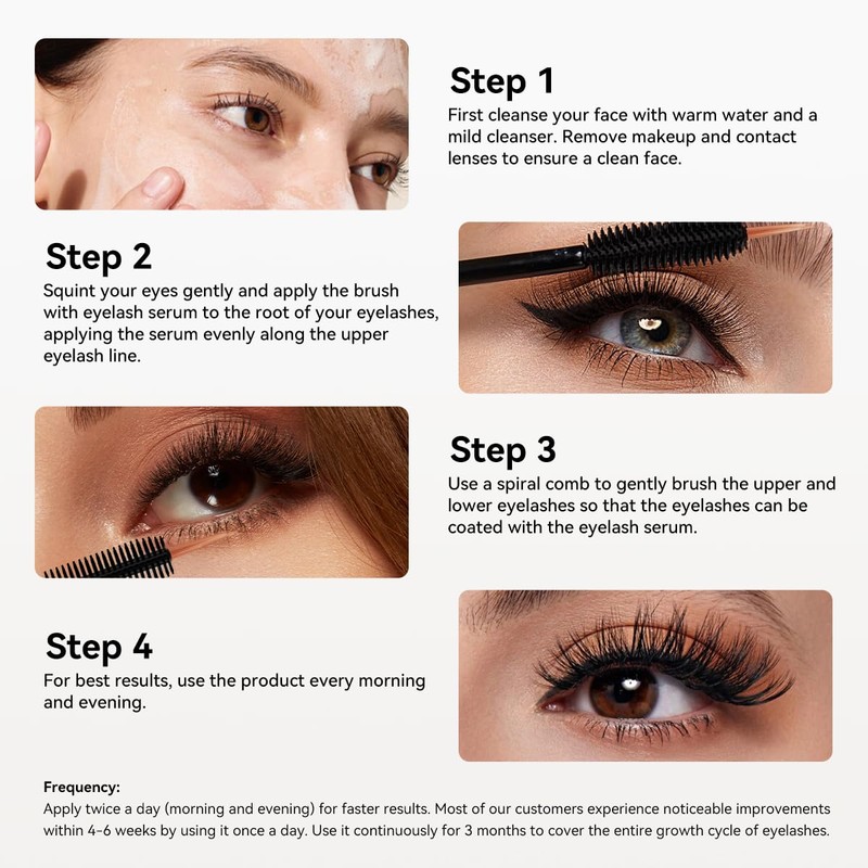 - Use for at least 30 days. Because eyelashes and eyebrows are slowest growing hairs in the human body. If you are not satisfied with the process of using our eye lash serum growth, you can contact us in time, we will provide you with satisfactory service.