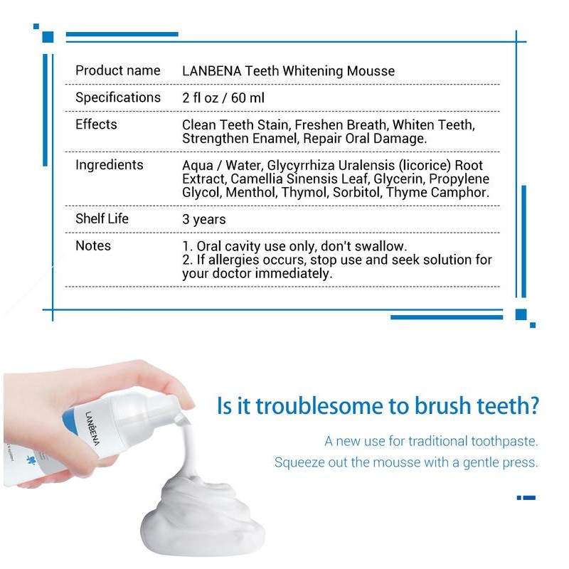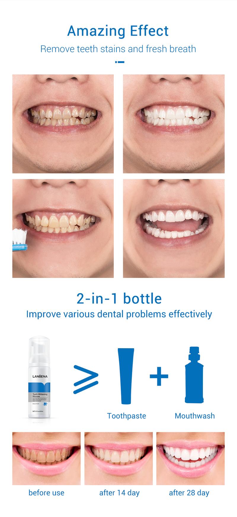 LANBENA Teeth Whitening Mousse Toothpaste Dental Oral Hygiene Remove Stains Plaque Teeth Cleansing, Ultra-fine Mousse Whitening Toothpaste Foam Oral Care Fresh Breath 60ml - Specification: 2 packs
