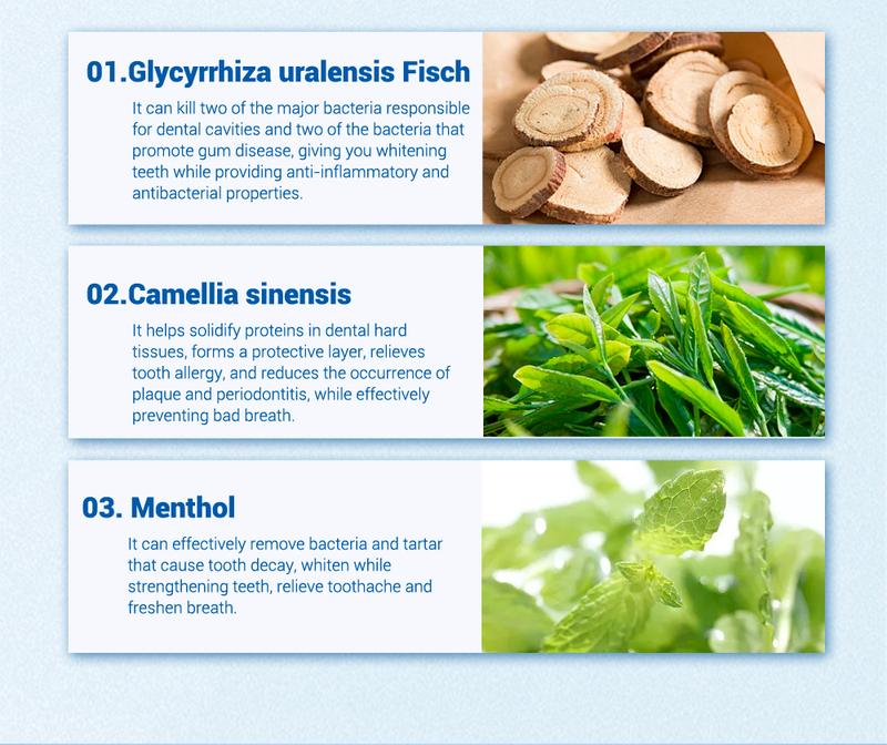 - Ingredients: Aqua/Water,Clycyrrhiza Uralensis licorice)Root Extract,Camellia Sinensis Lest,Glycerin,Propylene GlycoL,Menthol Thymol Sorbitol,Thyme Camphor