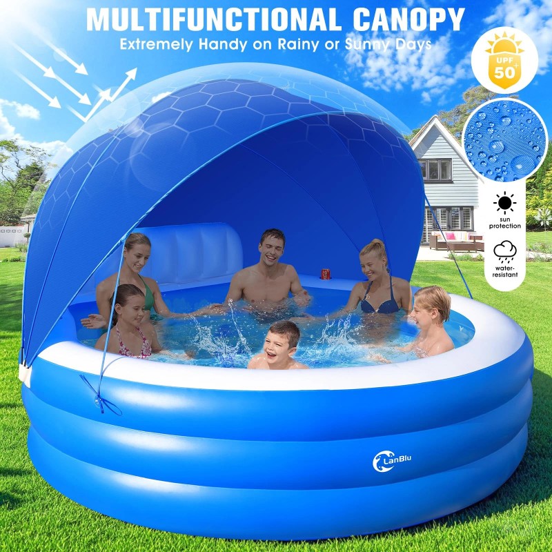 Lanblu 2025 Upgraded Inflatable Pool with Canopy, Family Lounge Blue