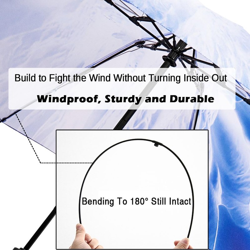 - SUPERIOR WINDPROOF AND WATERPROOF: This windproof umbrella is flexiable enough to withstand powerful wind without turning inside out. It is fortified with Wind-resistant frame and reinforced fiberglass ribs.