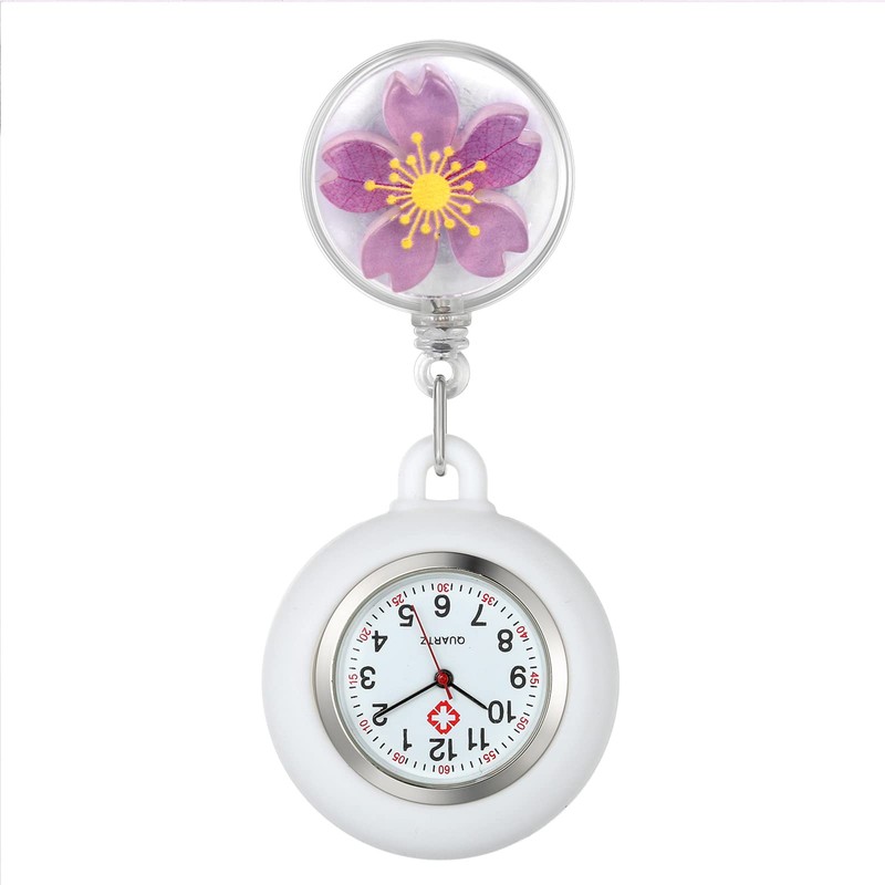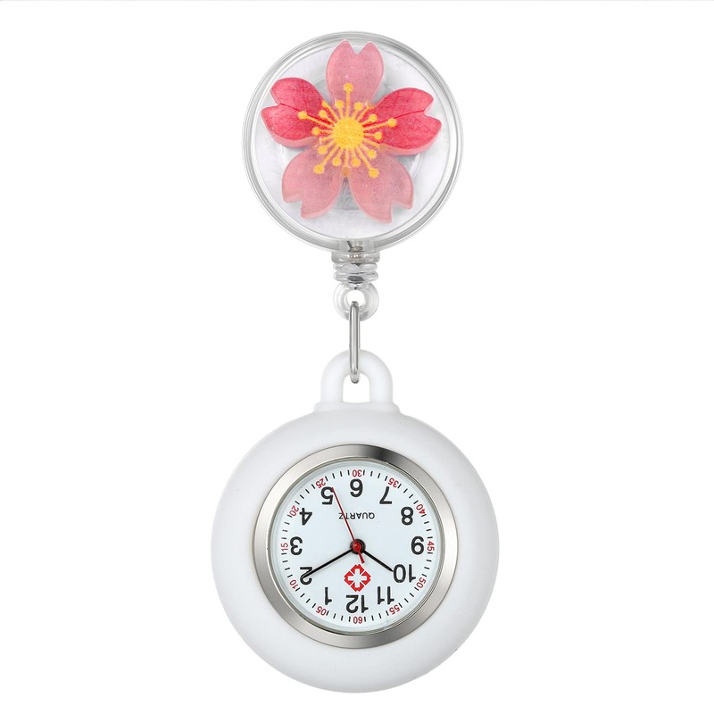 Lancardo Lapel Watch for Nurses Doctors Clip-on Hanging Nurse Watches Cute Cherry Blossoms Pattern Silicon Cover Badge Stethoscope Retractable Fob Watch