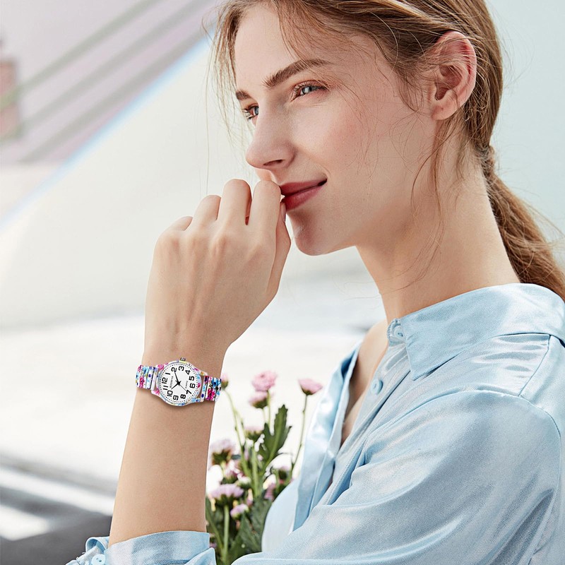 - Flower Elastic Band - This wrist watch with bohemian flower patterns stretch band can fit your arms flexibly without a clip. Easy to wear. Watch band can be stretched from 7.08inch(18cm) to 8.66inch(22cm)