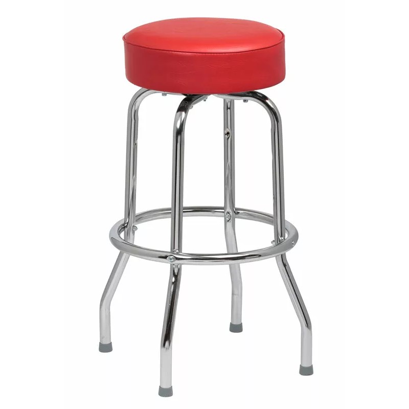 Lancaster 30" RED STANDARD SEAT BAR STOOL, SINGLE RING CHROME FRAME VINYL UPHOLSTERY (ONE)
