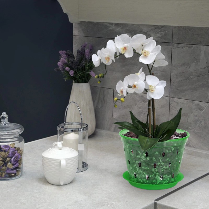 Clear Orchid Pots: Transparent material makes it easy to observe the condition of the roots. It also comes with a saucer so your floor or desk won’t get ruined