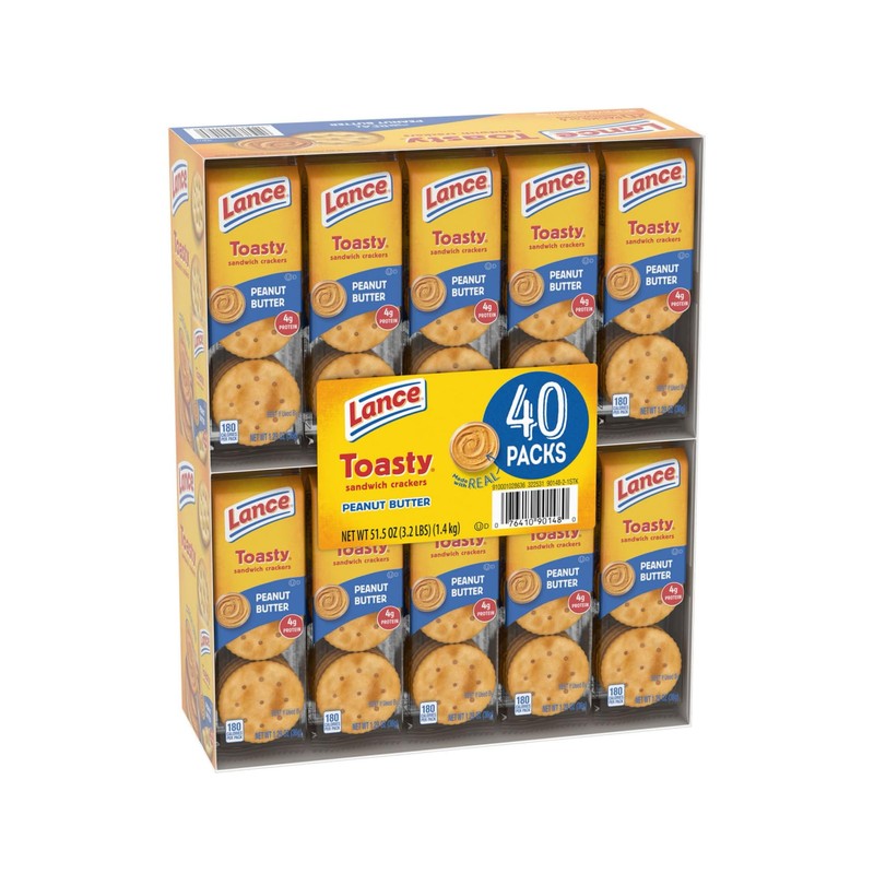 - 2 packs of 20 individual servings, 6 crackers per pack Made with real peanut butter for a delicious, creamy taste 4g of protein per serving, perfect for a quick snack A crunchy and savory treat loved by both kids and adults Convenient and individually wrapped packs for easy storage and sharing Ideal for lunch boxes, parties, or just a satisfying snack anytime Net weight: 3.22 lbs. (51.5 oz.)