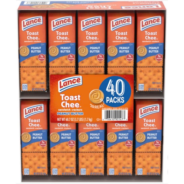 Lance Toast Chee Peanut Butter Sandwich Crackers, (40 Count) Bulk Box