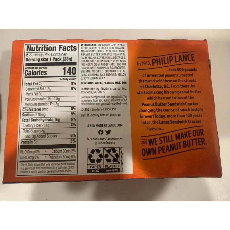 Lance Toast Chee Peanut Butter Sandwich Crackers 6 Pack Box 6.1 oz. Lunch Snack