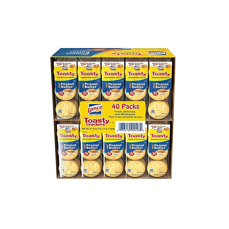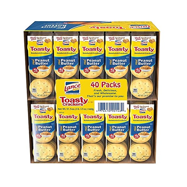 It's easy to love Lance toasty sandwich Crackers (1.29 oz., 40 ct.). They're crispy, satisfy hunger and are filled with real peanut butter. These delectable sandwich Crackers make a great snack for kids and adults alike and are easy to carry with you anywhere you go.