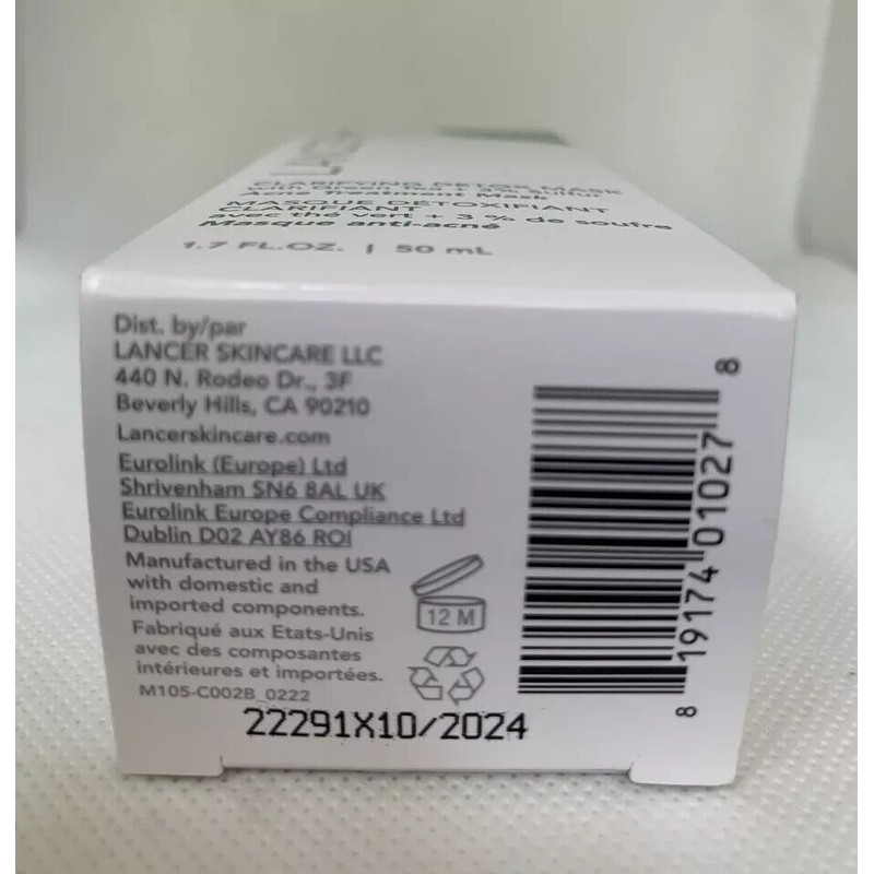 Lancer + Clarifying Detox Mask Green Tea 3% Sulfur 1.7 oz/50 ml Sealed NIB