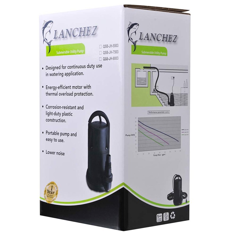 Lanchez Submersible Utility 3/4 HP Pump with 4450 GPH Flow for Water Removal, Drain Pump for Swimming Pool Garden Pond Basement,Transfer Pump 25 feet Power Cord