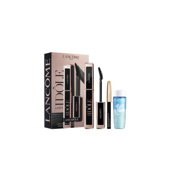 The perfect set to discover Lancôme ultra fanned-out eye look routine: Lash Idôle Mascara, Le Crayon KhôL eyeliner & Bi-Facil makeup remover crafted in a brand-new set packaging
