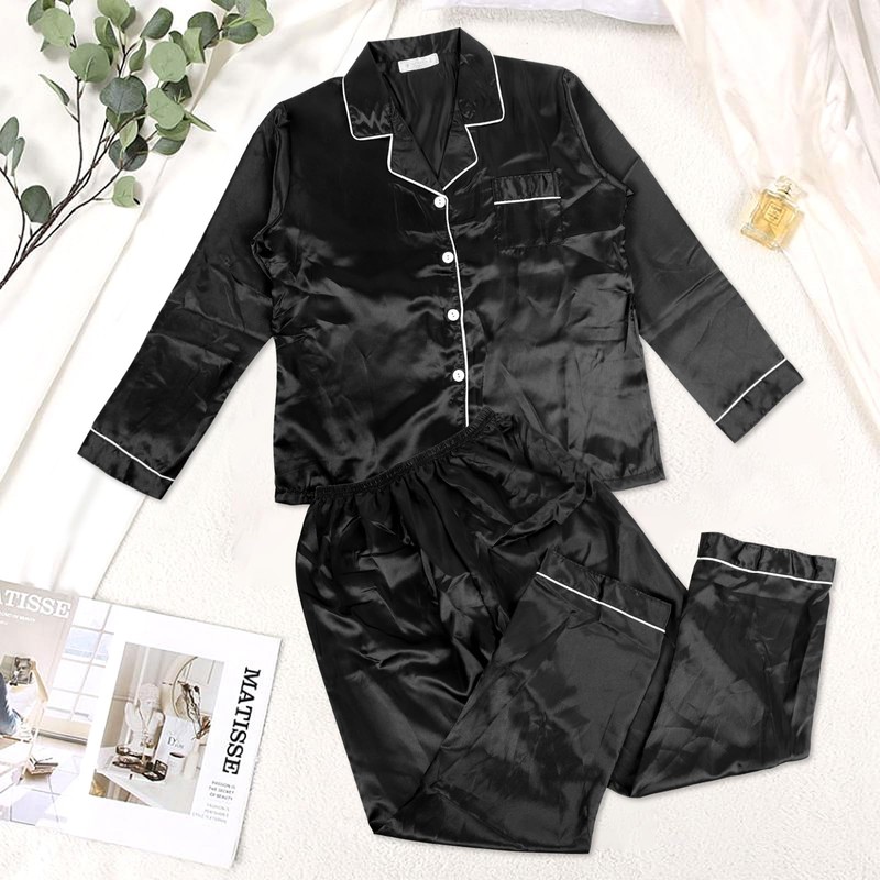 - 【DETAILED DESIGN】: The silk pajamas for women are a combination of long-sleeved tops and long pants, with classic notch collar, button closure, pockets, elastic waistband, contrast piping, fashionable and versatile.