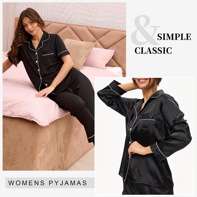 - 【WIDE APPLICATION】: Womens satin pajama set is suitable for daily wear, leisure, pajama party, girls' day, travel, hotel, vacation, role play, bridal pajamas, as home clothes for rest and sleep.