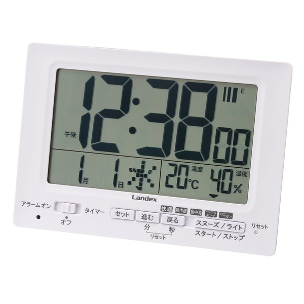 LANDEX YT5278WH Alarm Clock, Radio Wave, White, Neo Plus Timer, Digital Timer, Light Included, Automatic Illumination