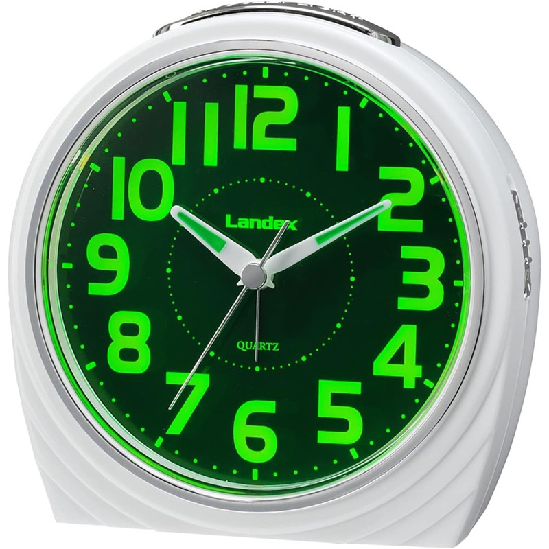 LANDEX YT5300WH Alarm Clock, Analog, Quiet, Continuous Second Hand, Light, Snooze Function, White