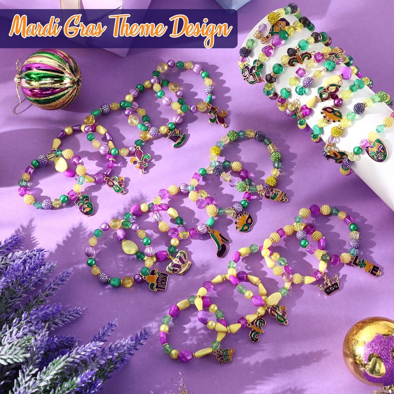 - Mardi Gras Design: the Mardi Gras bracelet for women adopts the classic purple, green and gold, with the Mardi Gras iris, clown hat and mask ornaments, each of which is an ideal interpretation of the Mardi Gras spirit, making you become the best representative of Mardi Gras