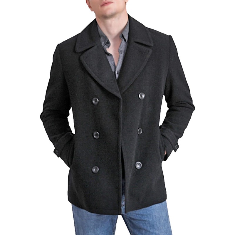 Landing Leathers Men Navy Wool Blend Double Breasted Walking Pea Coat (Also available in Big and Tall), Navy Blue, Large