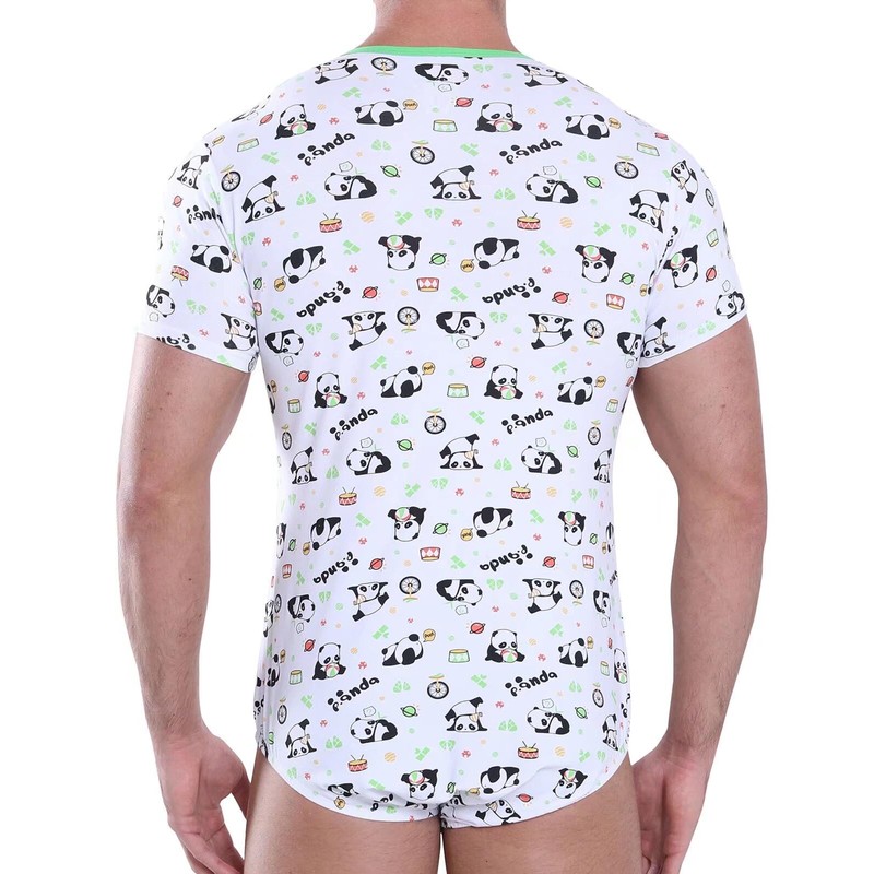 - Occasions: Men crew neck romper leotard nightwear sleepwear pajama top bodysuit, the same panda print as our new diaper, perfect as diaper bodysuit, suitable for nightwear, sleep wear, loungewear, home wear, cosplay party, honeymoon gift, anniversary gift.