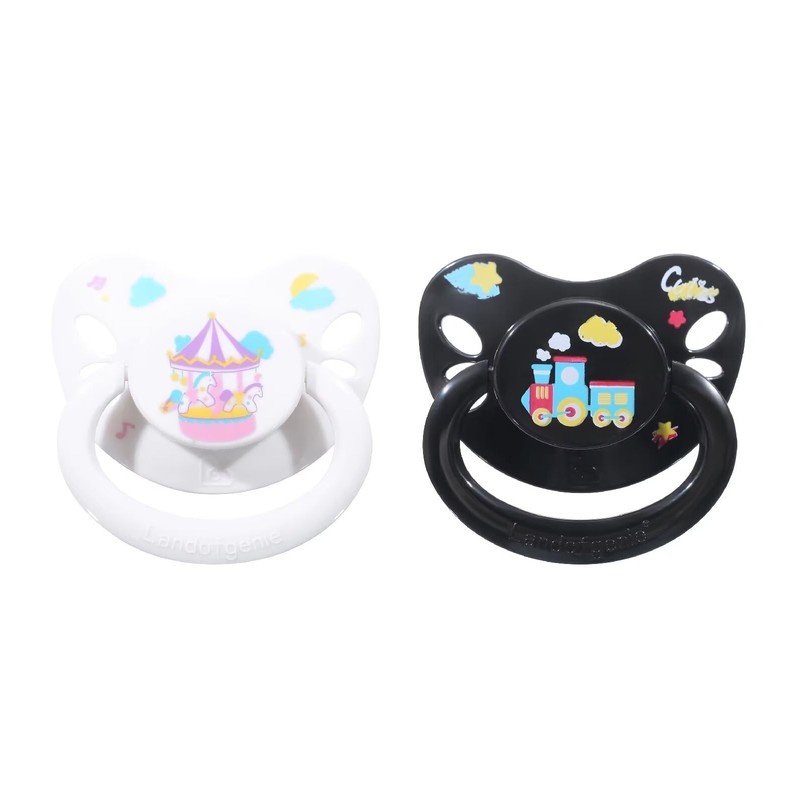 Landofgenie Printed Dummy Adult Size Large Teat Shield Dummy 2 Paci Pack Black + White